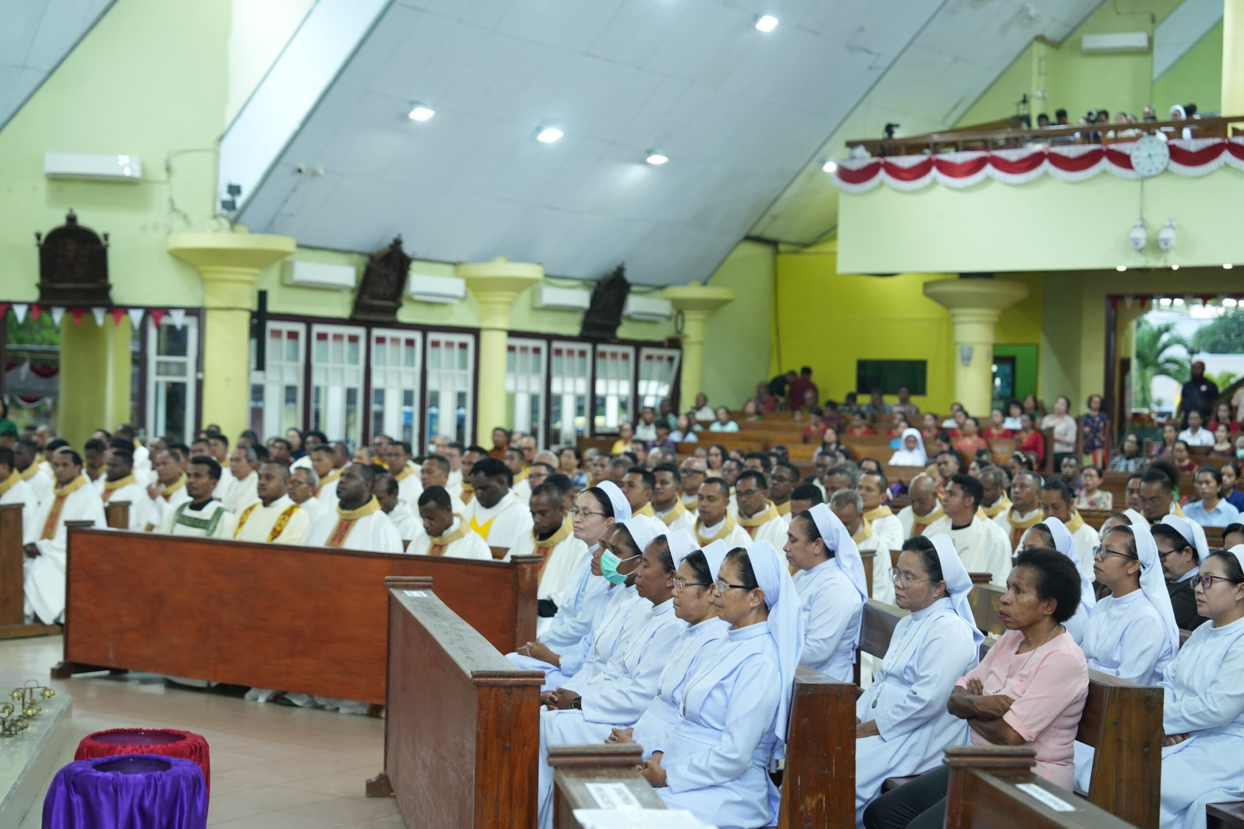 Meskipun Keuskupan Timika berhalangan hadir, kehadiran para imam dari empat keuskupan lainnya menjadi tanda nyata komitmen mereka dalam membangun persekutuan Gereja Katolik di Tanah Papua.