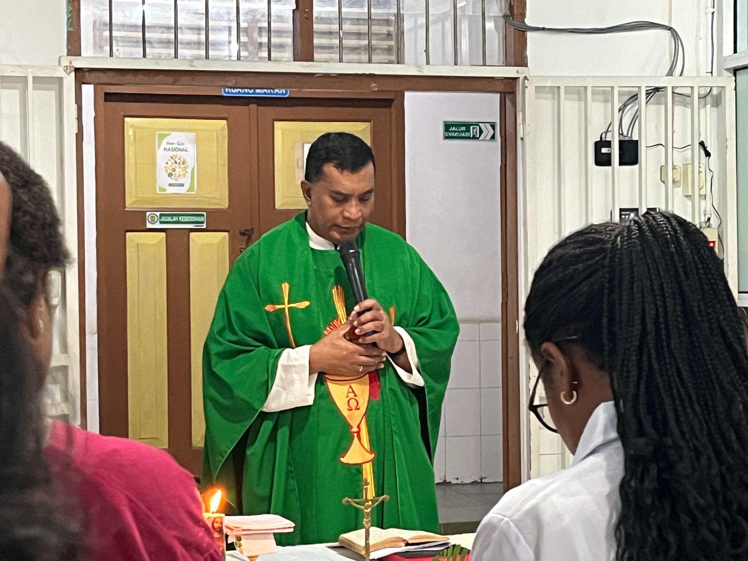 Dalam homilinya, Pater Rudy Renyaan menegaskan pesan Injil hari itu bahwa bukan apa yang masuk ke dalam mulut yang menajiskan manusia, melainkan apa yang keluar dari hatinya. Ia mengajak semua yang hadir untuk melihat kemba