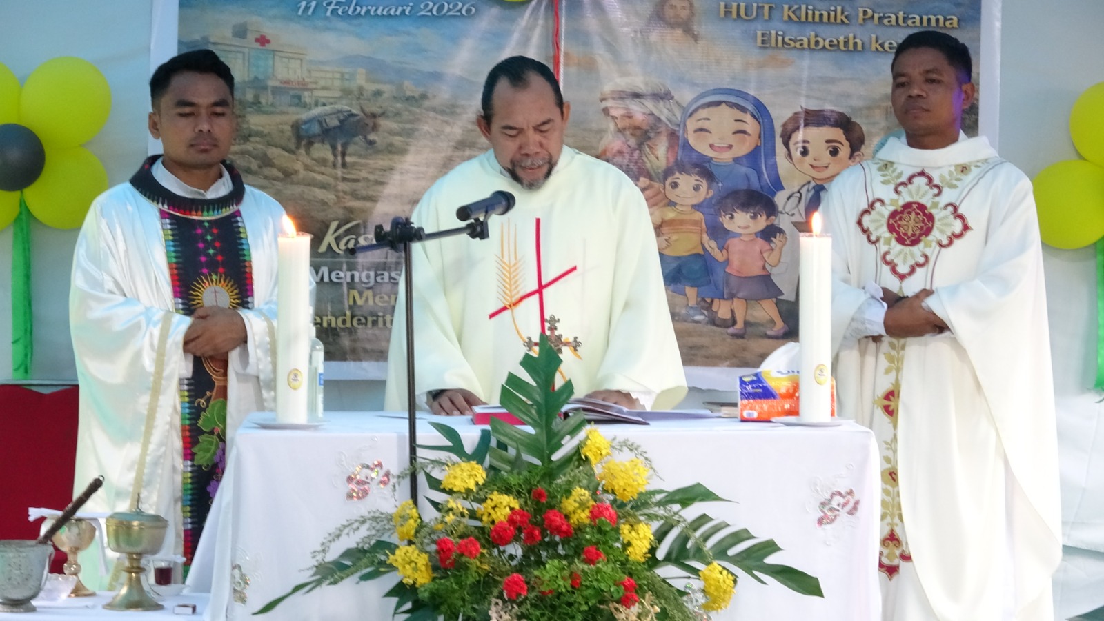 Dalam suasana penuh syukur dan kebersamaan, umat Allah bersama tenaga kesehatan Klinik Pratama Elisabeth St. Carolus Borromeus SP III Makbusun merayakan Perayaan Ekaristi Hari Orang Sakit Sedunia yang dirangkaikan dengan Peringatan Hari Ulang Tahun ke-12 Klinik Pratama Elisabeth, Rabu (11/02).