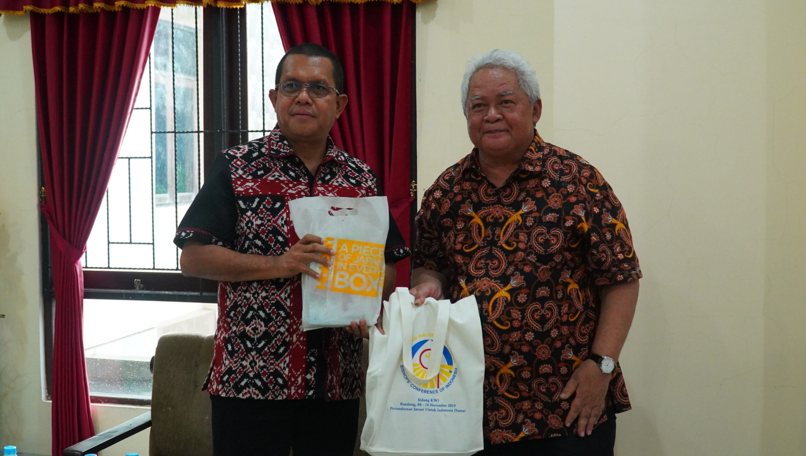Mengakhiri kunjungan, Gubernur NTT mengalungkan kain Timor kepada Uskup dan Sekretaris Keuskupan sebagai simbol persaudaraan dan penghormatan. Sebagai balasan, Uskup menyerahkan beberapa buku karyanya sebagai kenang-kenangan.
