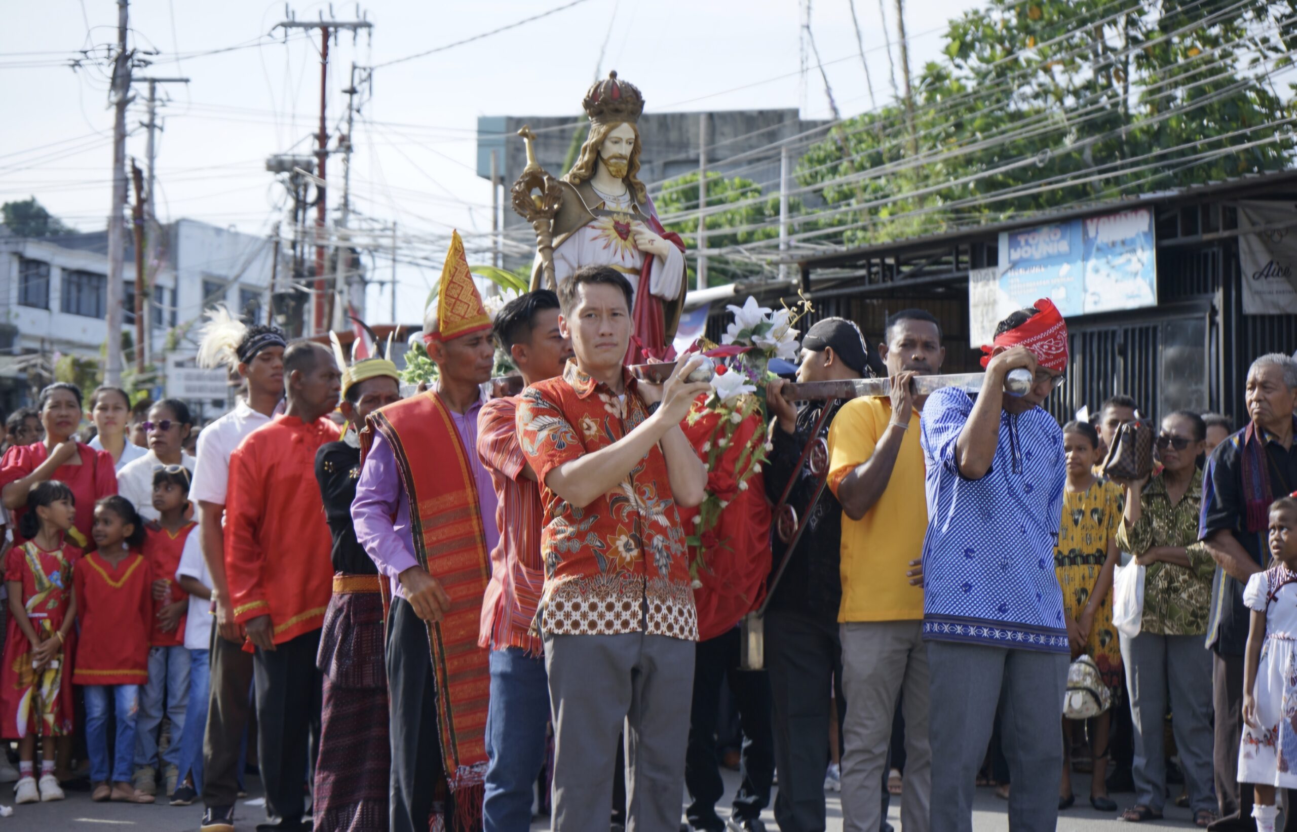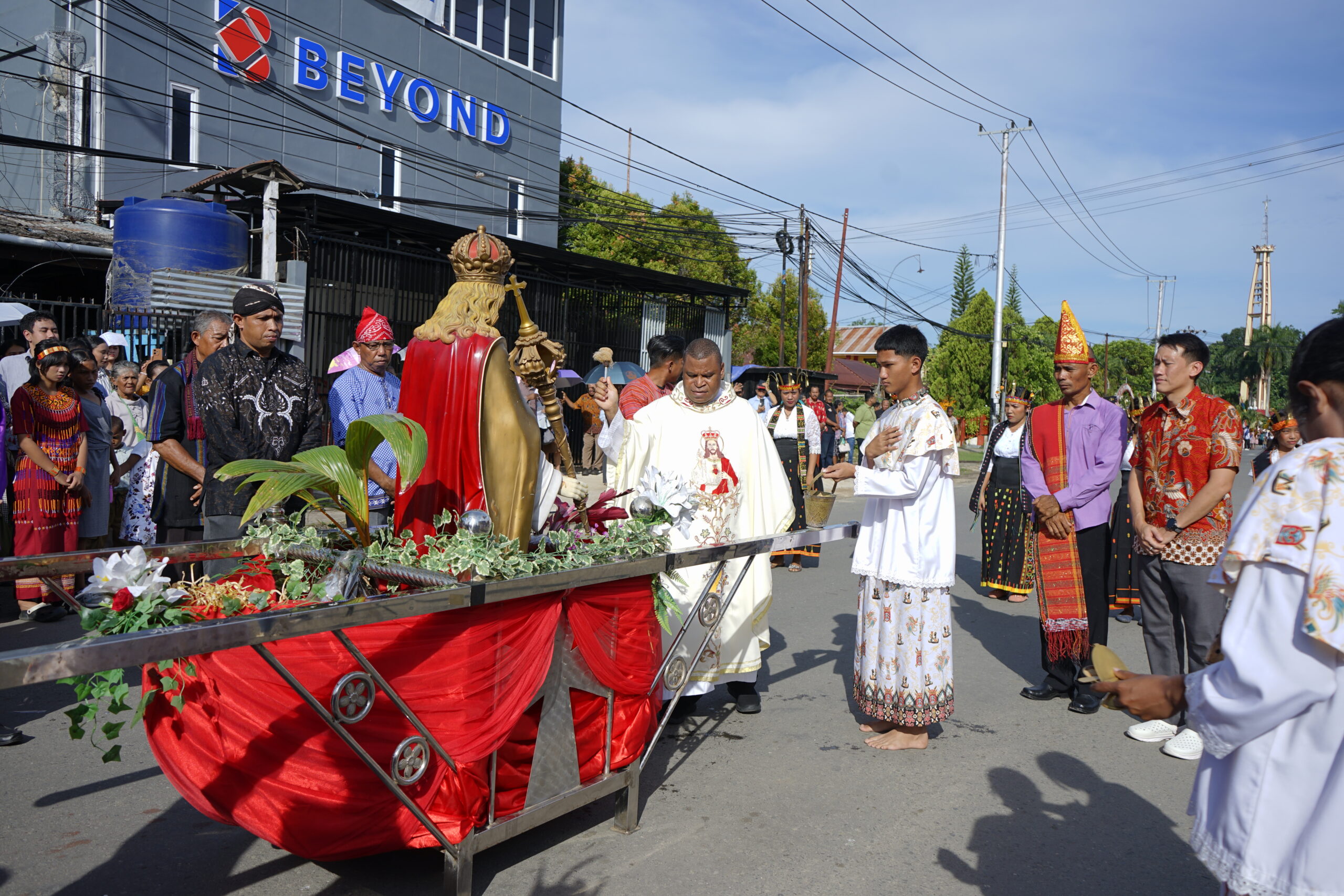 Perayaan diawali dengan perarakan Patung Kristus Raja dari depan Politeknik Saint Paul diiringi dengan tarian-tarian ethnis tanimbar, Flores, Key dan Papua. Umat berjalan dengan penuh hormat dan syukur menuju Gereja Katedral, menyambut Kristus Sang Raja Semesta Alam.