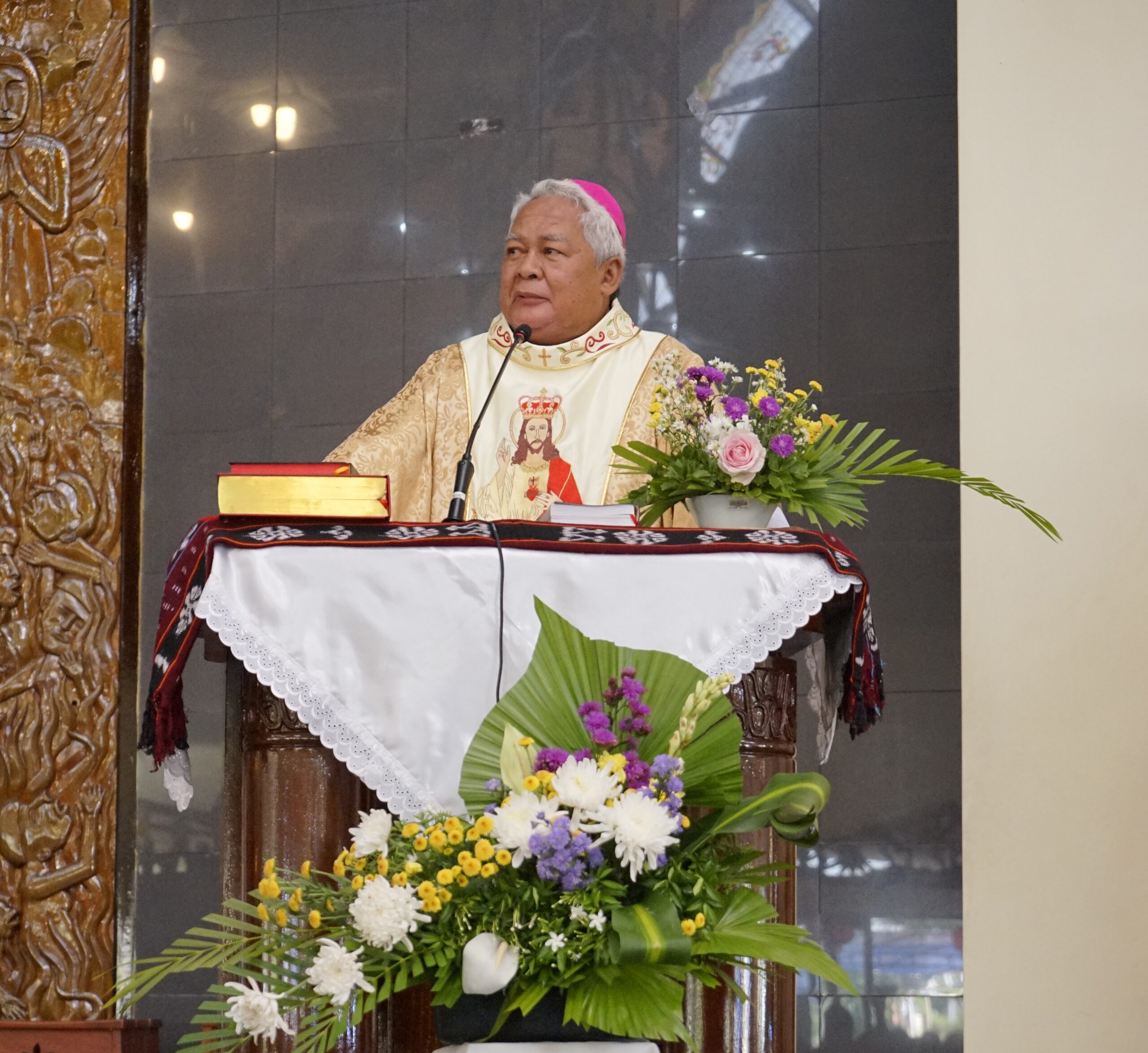 Dalam homilinya, Uskup Datus Lega mengajak seluruh umat untuk menimba inspirasi dari Kristus Raja, yang tidak berkuasa dengan kedudukan duniawi, melainkan dengan kasih pengorbanan.