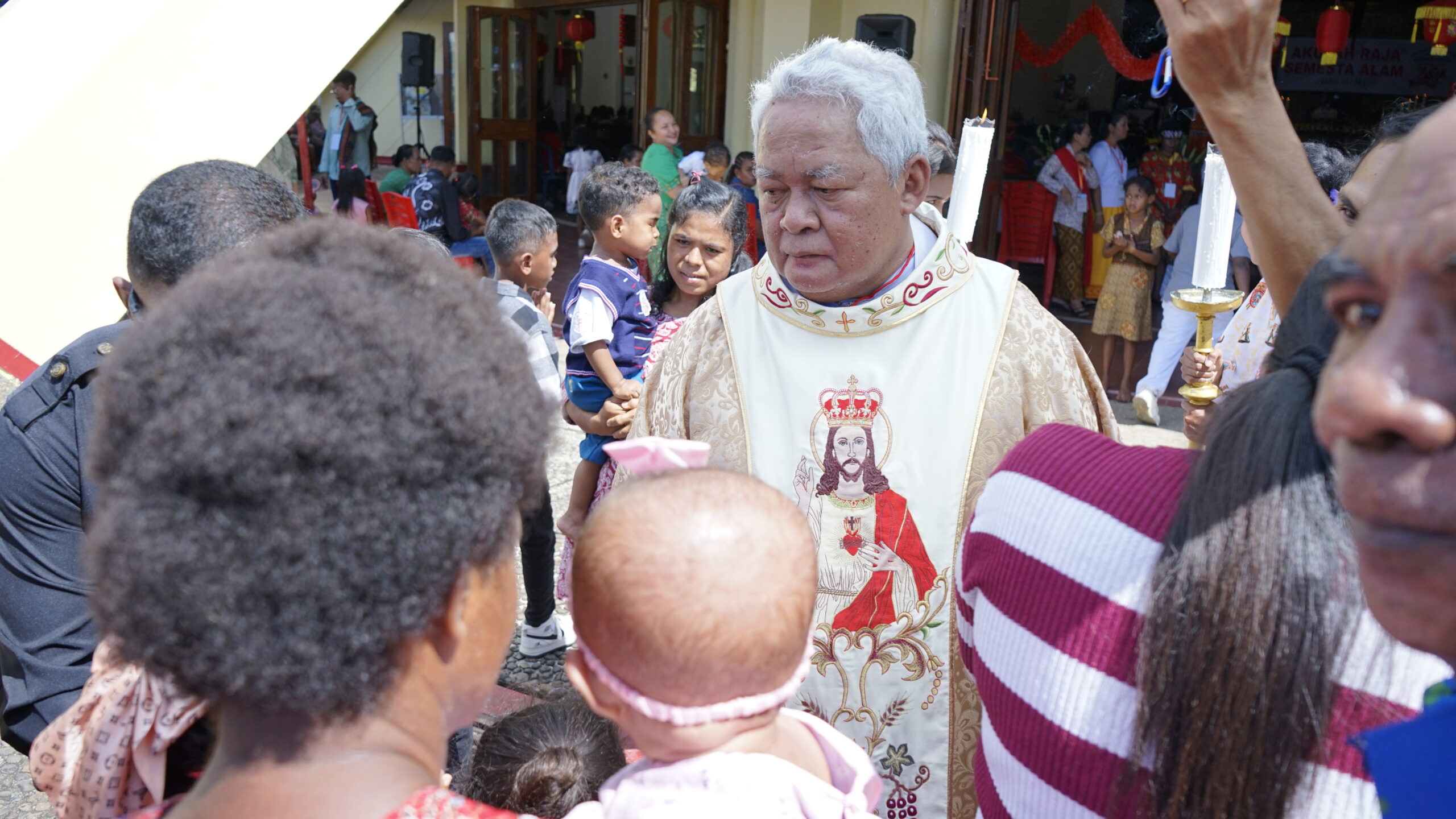 SORONG, KOMSOSKMS.ORG — Uskup Manokwari–Sorong, Mgr. Hilarion Datus Lega, memimpin Perayaan Syukur 78 Tahun Paroki Kristus Raja Katedral Sorong, pada Minggu (23/11). Perayaan puncak yang dihadiri ribuan umat ini berlangsung meriah dan penuh sukacita, menegaskan iman umat yang terus bertumbuh di pusat Keuskupan Manokwari–Sorong.