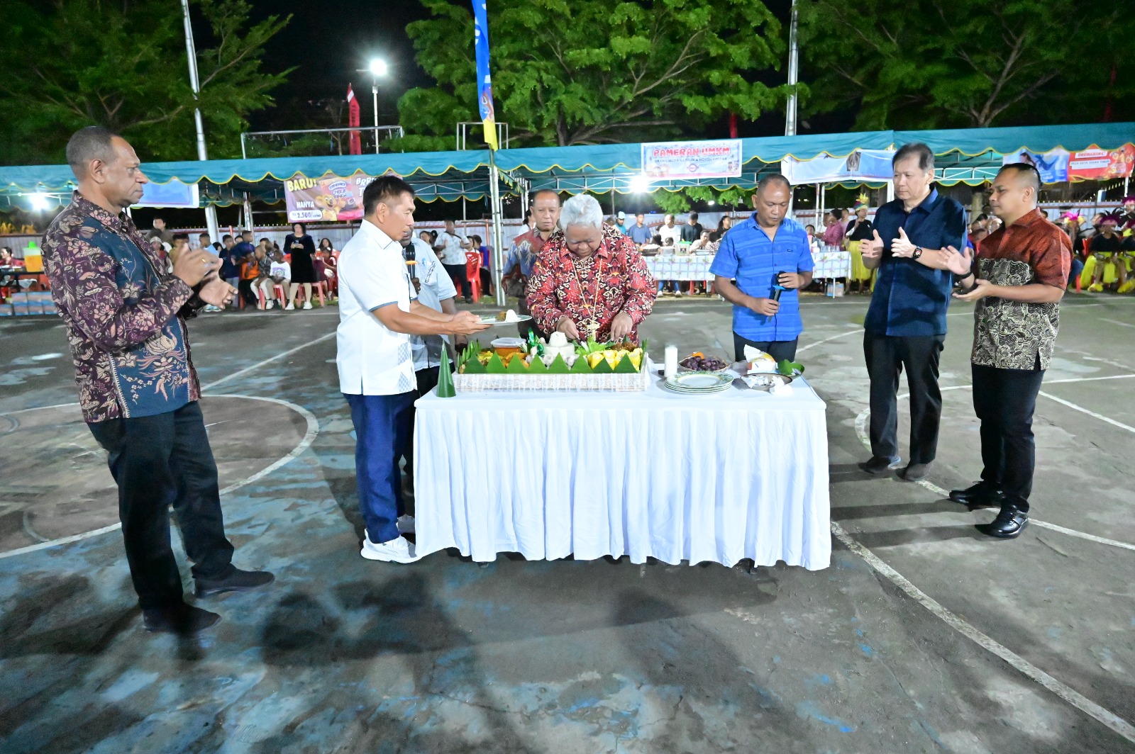 Mgr. Hilarion Datus Lega memotong tumpeng ulang tahun Paroki Ko-Katedral Manokwari