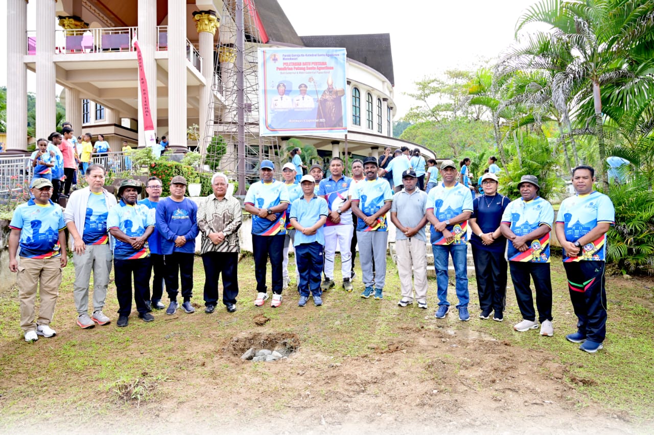 Acara peletakkan batu pertama pendirian Patung Santo Agustinus di depan Gereja Ko-Katedral Manokwari