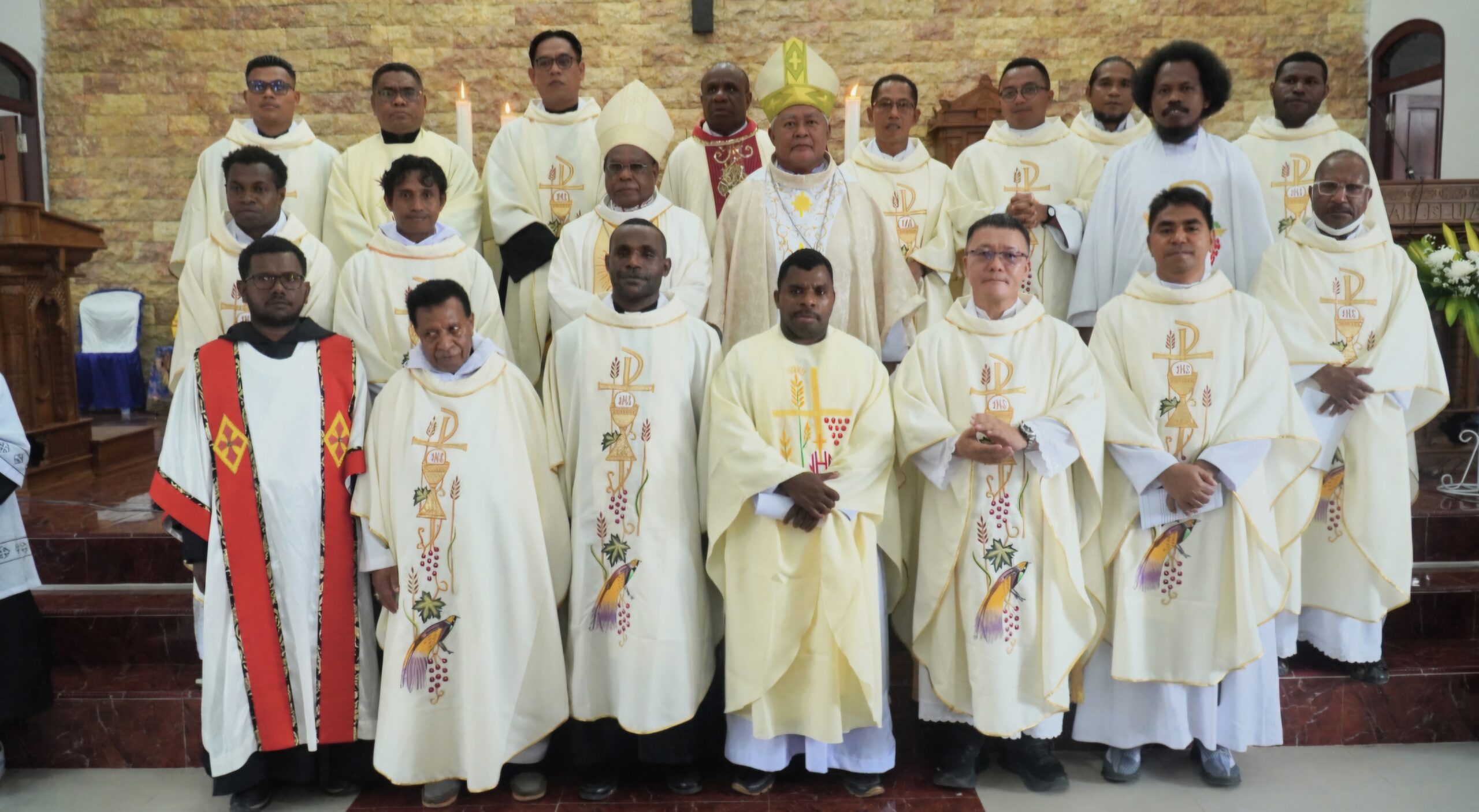 Mgr. Hilarion Datus Lega dan Mgr. Bernardus Bofitwos Baru, OSA bersama para imam konselebran