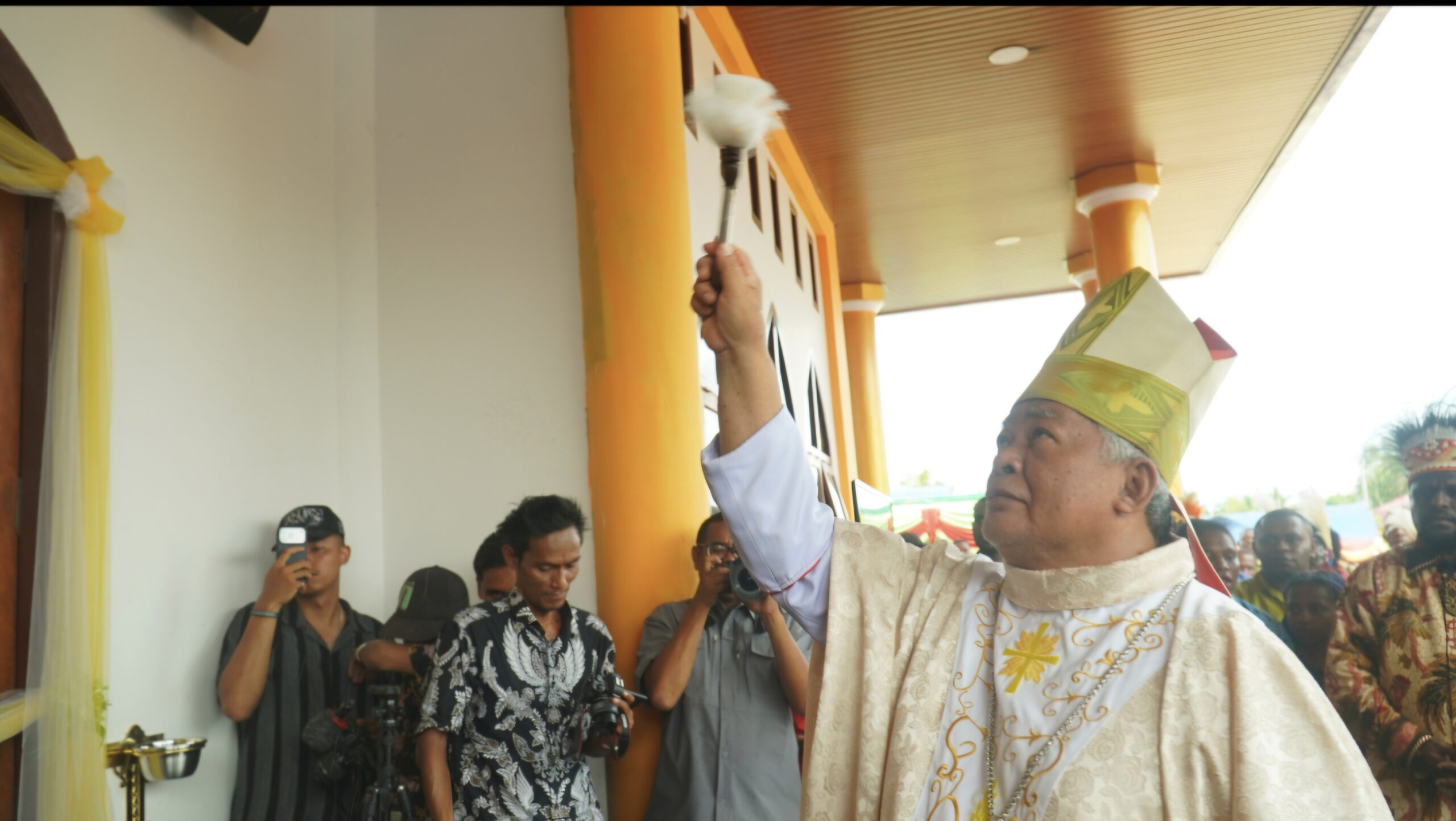 Perayaan Ekaristi pemberkatan dipimpin oleh Uskup Manokwari–Sorong, Mgr. Hilarion Datus Lega, bersama Uskup Timika, Mgr. Bernardus Bofitwos Baru, OSA, serta didampingi puluhan imam konselebran dari berbagai paroki dan wilayah. Ribuan umat tampak memadati gereja dan halaman sekitarnya dengan penuh sukacita dan rasa syukur atas rampungnya pembangunan rumah doa umat tersebut.