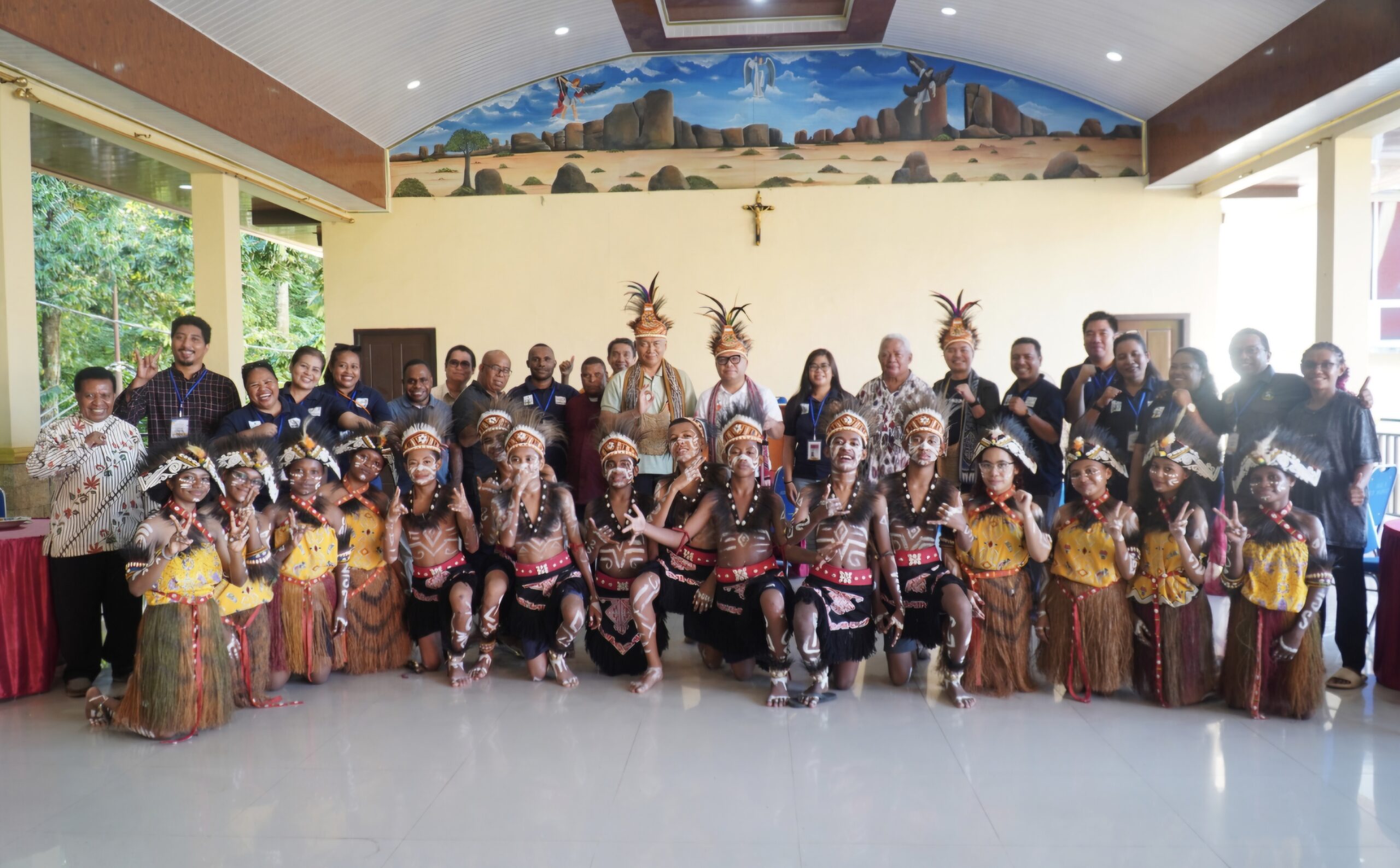 Penyambutan tersebut dihadiri langsung oleh Uskup Keuskupan Manokwari–Sorong, Mgr. Hilarion Datus Lega, bersama panitia pelaksana TePas serta sejumlah imam. Kehadiran para pimpinan Gereja ini menegaskan pentingnya Temu Pastores sebagai ruang refleksi bersama demi pengembangan karya pastoral keuskupan.