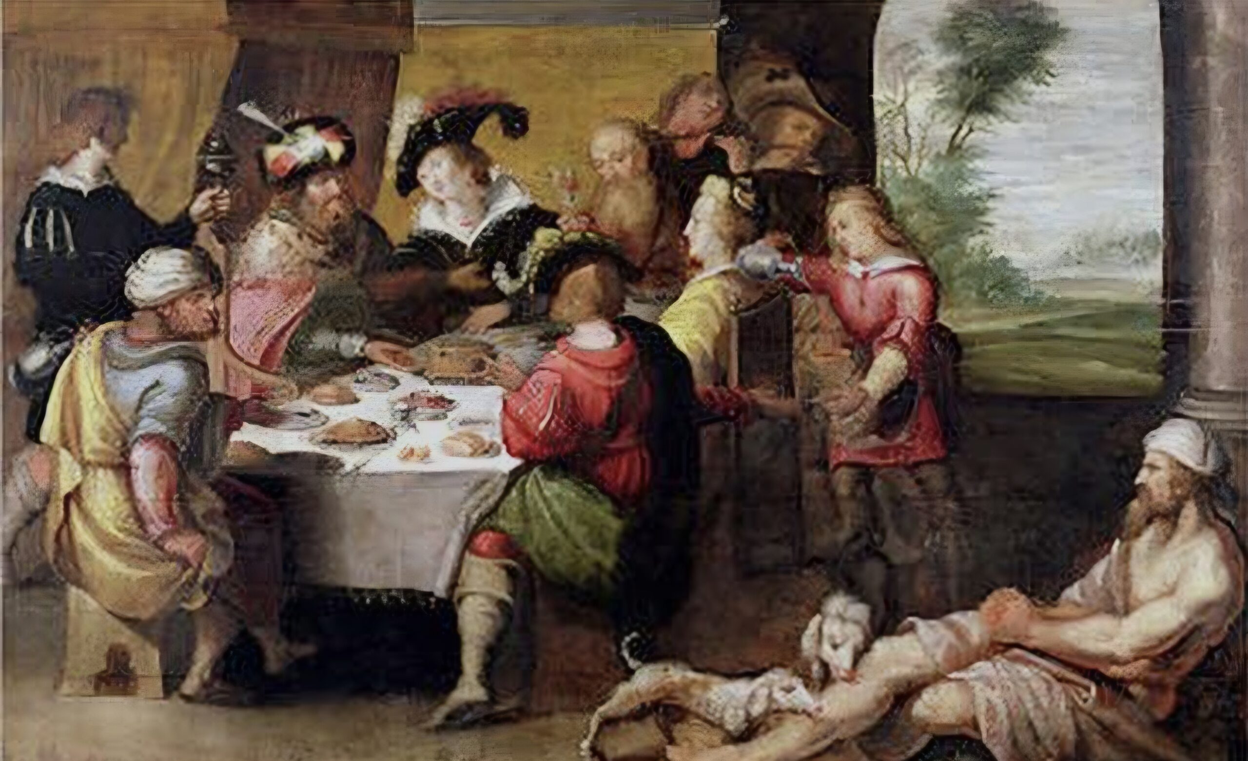 Puncaknya, Injil hari ini menampilkan kisah orang kaya dan Lazarus yang miskin. Orang kaya itu tidak digambarkan jahat, tidak pula menindas Lazarus. Tetapi ia bersalah karena hatinya tertutup: ia acuh, tidak peduli, tidak pernah menoleh, dan tidak pernah berbagi. Harta yang ada padanya tidak menjadi sarana keselamatan, melainkan menjerat dia dalam egoisme. Sementara Lazarus, yang menderita di dunia, akhirnya dipeluk Allah dalam kebahagiaan abadi.