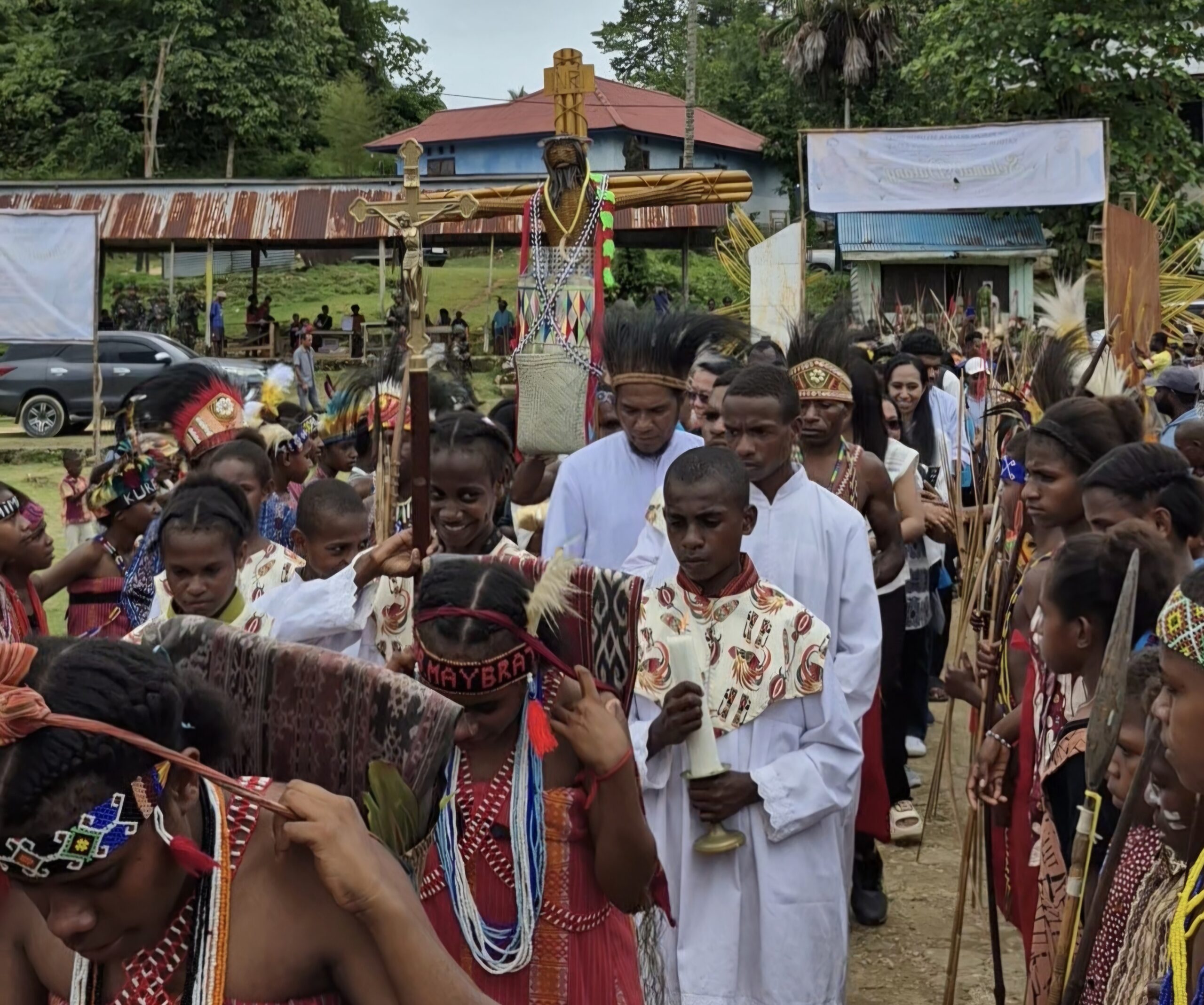 AYATA, KOMSOSKMS.ORG – Perjalanan Salib Indonesian Youth Day (IYD) di Keuskupan Manokwari-Sorong kembali memasuki babak baru. Setelah sebulan penuh di Paroki St. Albertus Agung, Teminabuan, kini Salib IYD resmi berpindah ke Paroki St. Andreas Ayata, Aifat Timur. Prosesi arak-arakan yang dilaksanakan pada Sabtu, 1 November 2025 ini, menandai kunjungan kesembilan dari rangkaian Kirab Salib IYD di wilayah keuskupan.