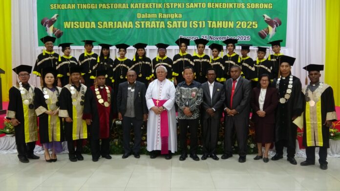 Wisuda Sarjana Strata Satu STPK Santo Benediktus Sorong tahun ini menjadi penanda bahwa Gereja terus menyiapkan para pelayan pastoral yang kompeten, berdedikasi, dan siap diutus demi kemuliaan Tuhan serta pelayanan bagi sesama.